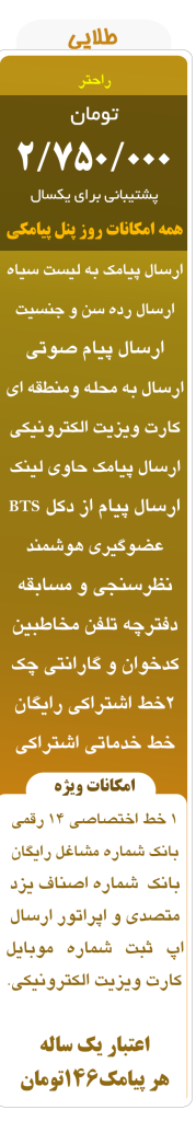 دوستانی که نیاز به پنل پیامک و ارتباط با مشتریانشان دارند ولی فرصت و زمان خالی برای استفاده از پنل پیامکی را ندارند میتوانند با خرید پنل طلایی تک نما یک متصدی ارسال پیام بصورت آنلاین و 24 ساعته در روز در اختیار داشته باشند و با خیال راحت همه امور مربوط به پنل پیامکی را به متصدی ما بسپارند.